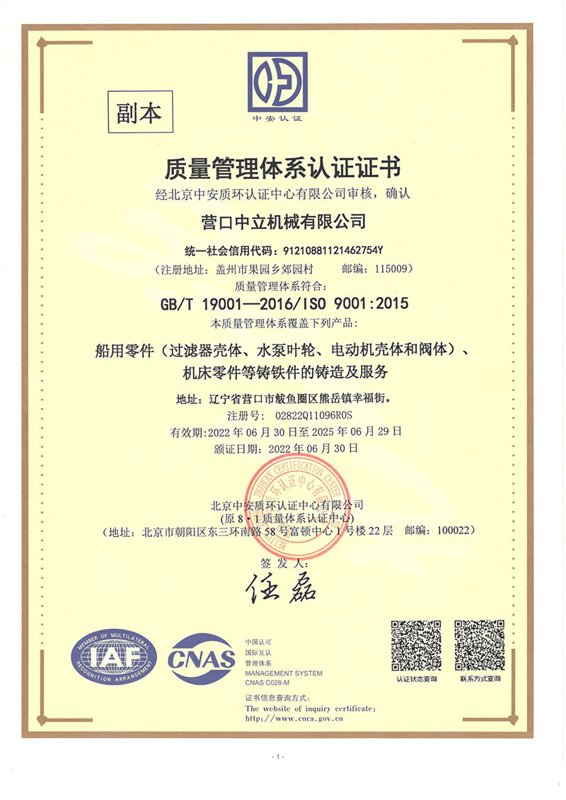 營口中立機(jī)械有限公司位于營口市鲅魚圈區(qū)熊岳鎮(zhèn)幸福街,成立于1982年,占地面積15000平方米,建筑面積10000平方米,是從事高性能鑄鐵件生產(chǎn)的專業(yè)廠家。年生產(chǎn)能力5000噸。鑄造采用電爐熔煉呋喃樹脂砂造型先進(jìn)工藝生產(chǎn),產(chǎn)品具有材質(zhì)性能高、形狀復(fù)雜、尺寸精度、表面美觀等特點(diǎn)。多年來產(chǎn)品主要出口日本、德國及英美等國家,產(chǎn)品種類有機(jī)床、電機(jī)、船用閥門水泵、工程機(jī)械等千余品種鑄件或加工配套產(chǎn)品。